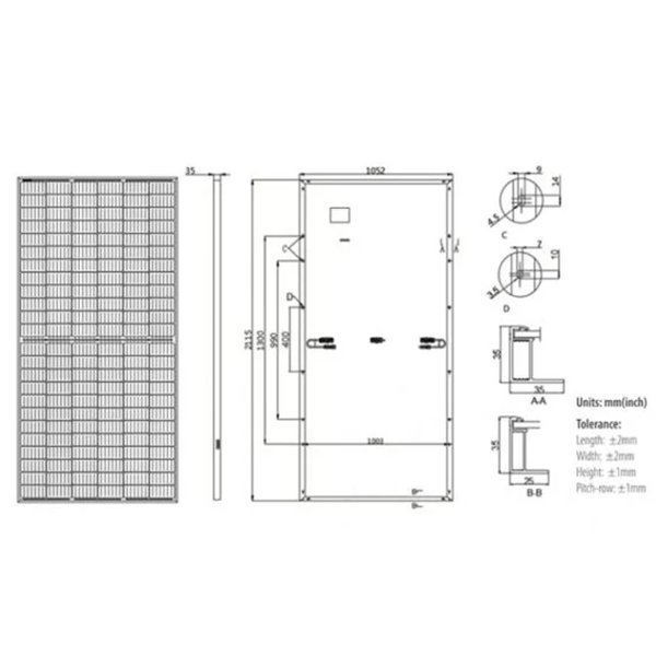 Tấm pin sở hữu thiết kế linh hoạt, dễ dàng lắp đặt trên mái nhà, mặt đất hoặc hệ thống nổi, tương thích với biến tần (inverter) của nhiều thương hiệu phổ biến, đảm bảo hiệu suất tối đa.